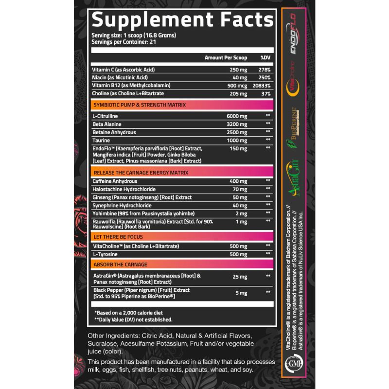 - Pre Workout Carnage Advanced là bột uống bổ sung trước khi tập luyện thể thao.
